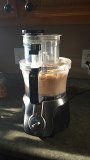 After about three minutes, the ground peanuts will turn into a ball of peanuts. Wait for it…. After about five minutes, the heat from the chopping attachment slicing through this peanut ball will start to liquefy the blob, and voila, you have peanut butter! Pour (yes, Martha, pour means pour in this instance) your peanut butter into your container of choice. I use a quart canning jar because, frankly I have about a million of them, and I get to use the cute little chalkboard stickers my sister got me for Christmas last year!