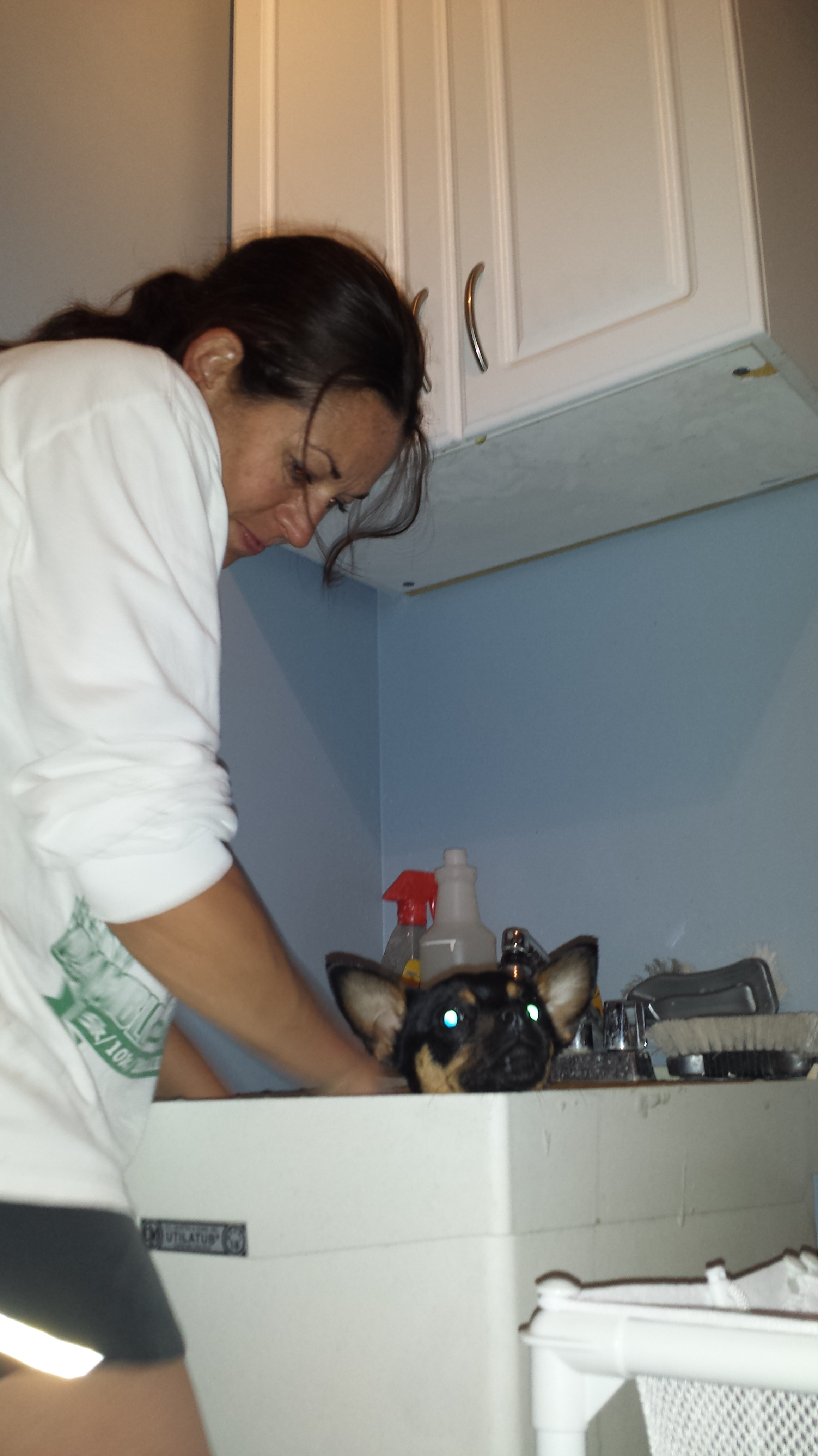 I actually bathed a dog. Yep, that’s me… I’m grimacing, because it is still freaking gross and I think I was washing her butt at the time. But it wasn’t that bad.