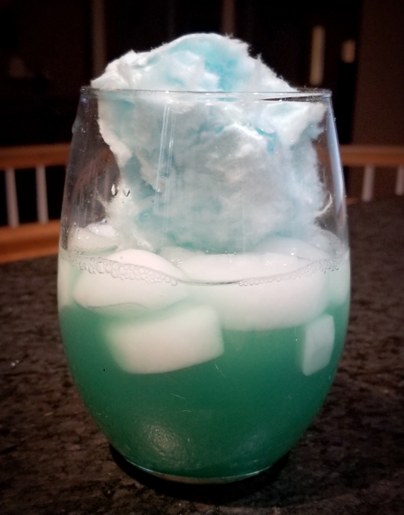 P.S. If you are really concerned with the calories and want to be void of all fun, Clear American makes a Cotton Candy flavored Sparkling Water that can replace the Cream Soda and actual cotton candy. Not as good, not as colorful, but that substitution will remove all calories from your glass. 🙂
