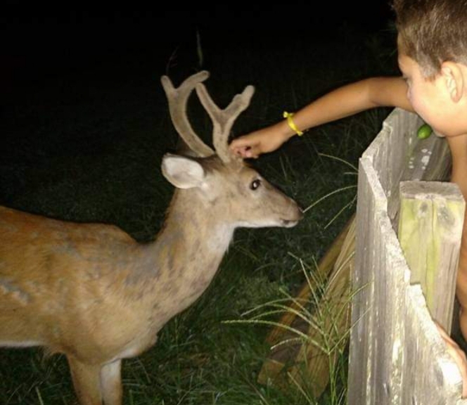 We also have a little family of deer who frequent our property. Mama Deer, The Twins, and Baby Deer love snacking on the wild blackberries, mulberries, and apples in our yard. While Mr. Deer only sporadically makes his debut, we have history, ya’ll. Several years back, we were sitting around a campfire in the backyard when this little guy came up to visit.