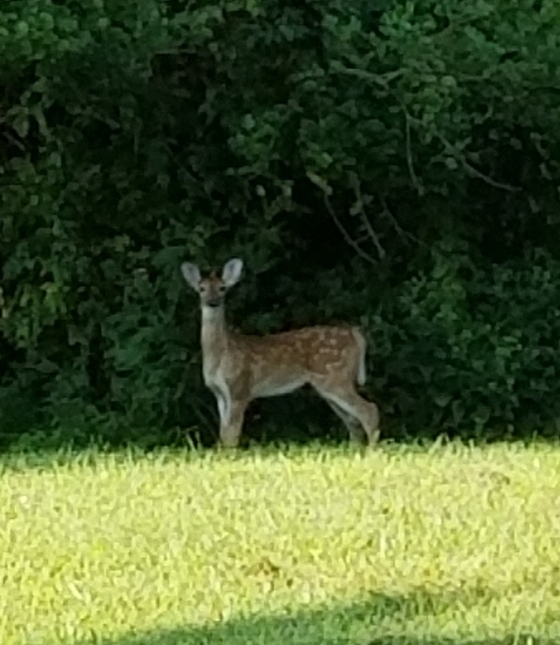 Mama Deer, The Twins, and Baby Deer are still feeling me out on my offers of a hug, but I’m making progress. One of The Twins walked the length of our property after some coaxing.